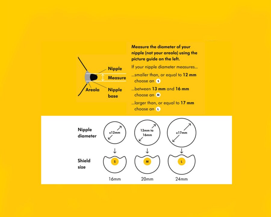 Medela Contact™ Nipple Shields are available in 3 sizes, (16mm [S], 20mm [M], 24mm [L]) to fit a range of nipple diameters. Getting the correct size is important for comfort and milk flow.