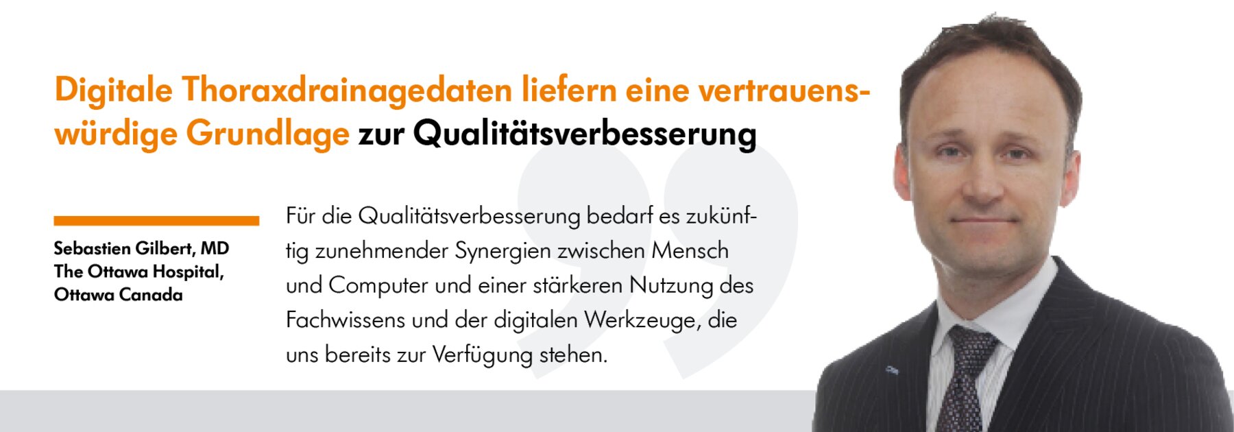 Das Ziel der zweiten Studie bestand darin, mithilfe digitaler Daten des Thopaz+-Systems optimale Kriterien zur Lösung parenchymaler Luftleckagen abzuleiten, mit denen die Dauer der Thoraxdrainage ohne Erhöhung der Komplikationen minimiert werden kann.2 Die Forscher sammelten prospektive Luftstromdaten von 400 Patienten, berechneten den Durchschnitt in 10-Minuten-Intervallen und analysierten Dauer und Wiederauftreten, Häufigkeit und Volumen von Luftleckagen. Mithilfe der Analyse wurden die optimalen Kriterien auf Grundlage der Patientensicherheit (geringe Häufigkeit und Menge wiederkehrender Luftleckagen) und der Effizienz (kürzeste Dauer anfänglicher Luftleckage) ermittelt. Die Autoren kamen zu dem Schluss, dass eine postoperative Luftleckage als behoben gelten kann, wenn die Luftmenge 8 Stunden lang ununterbrochen bei unter 50 ml/Minute bleibt. Die Entfernung des Thoraxdrainageschlauchs bei Erreichen dieses Wertes bei einer Luftleckage wurde im Hinblick auf Sicherheit und Effizienz optimiert.