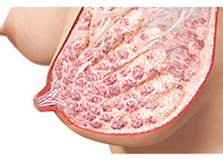 Eine grafische Darstellung der Anatomie einer stillenden Brust.