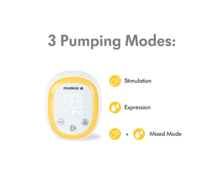 Medela Easy includes a Stimulation mode, an Expression mode, and a mixed mode that combines these two modes by adding cycles of stimulation in between, providing more comfort or promoting more breastmilk flow.