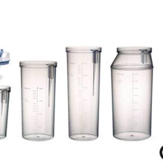 Disposable suction liners and reusable PC jars in sizes of 1.5 and 2.5 litres.