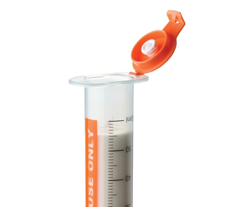 GraviFeed Syringes are individually packaged with a snap-tight lid and a closed end cap.