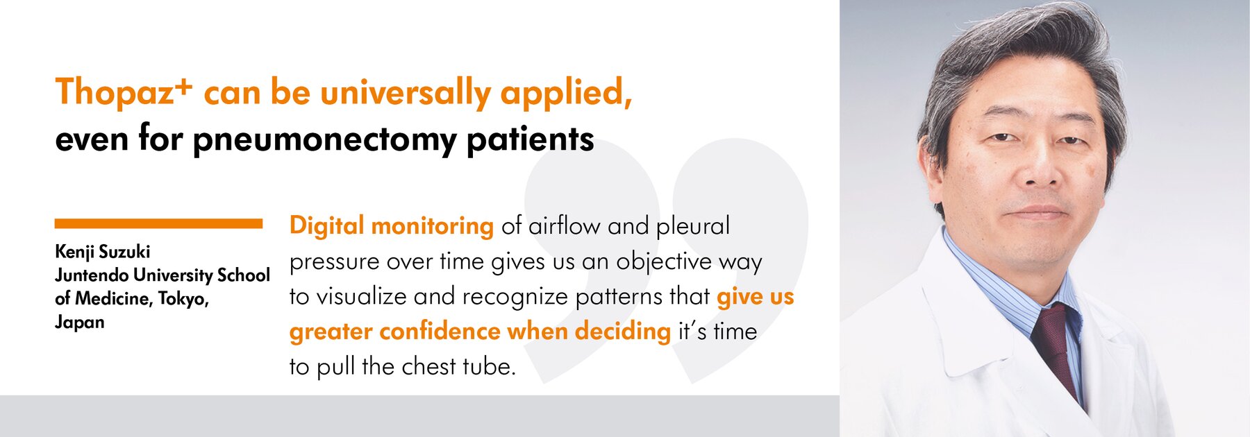 2. Takamochi K, Imashimizu K, Fukui M et al. Utility of Objective Chest Tube Management After Pulmonary Resection Using a Digital Drainage System. Ann Thorac Surg. 2017; 104: 275-283. doi: 10.1016/j.athoracsur.2017.01.061