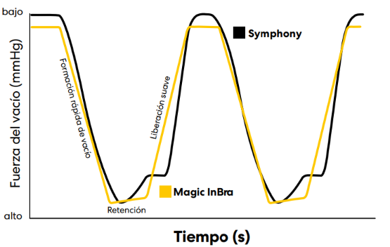 El rendimiento hospitalario va más allá de un nivel de vacío potente. Uno de sus secretos radica en el patrón de extracción: al mamar, los bebés generan vacío de forma intuitiva y rápida y lo liberan gradualmente para conseguir la máxima cantidad de leche. Symphony®, el extractor n.º1 en hospitales a nivel mundial2, ha logrado imitar con éxito este comportamiento mediante su patrón de extracción3 clínicamente probado, proporcionando el mejor equilibrio entre eficiencia y comodidad.