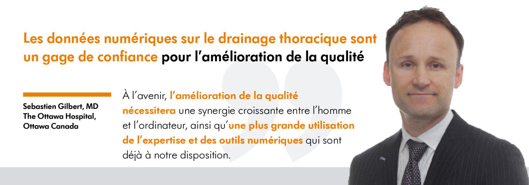 Dans la première étude, Dr Gilbert et ses collègues ont développé, testé et validé un classificateur d’analyses aléatoire pour identifier les patients chez qui les drains thoraciques peuvent être retirés en toute sécurité et en temps voulu au cours du suivi, sur la base des données longitudinales de drainage des fluides recueillies par le système Thopaz+.1 Leurs résultats ont montré qu’il était possible d’obtenir des prédictions fiables dès le début du processus et que le classificateur garantissait que les drains thoraciques qui devaient être maintenus ne soient pas retirés au prix du maintien potentiel de quelques-uns inutilement.