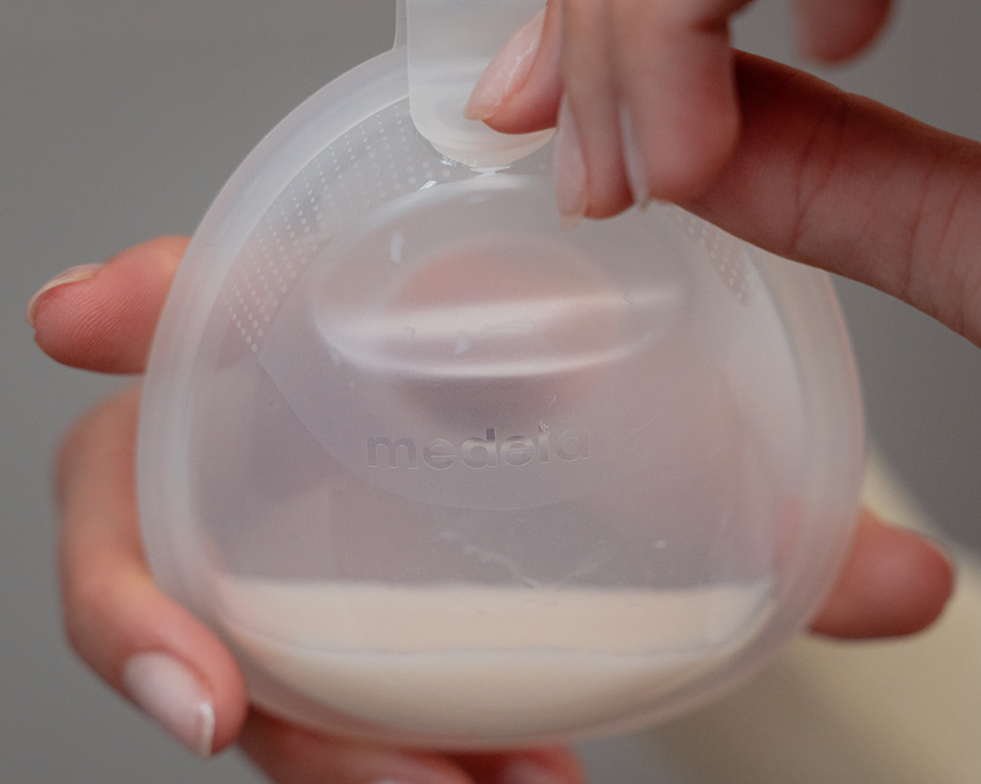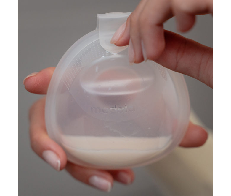 De nombreuses mamans remarquent que le sein qui n’a pas été utilisé pendant l’allaitement ou l’expression laisse échapper du lait lors de la montée de lait. C’est ce qu’on appelle un écoulement de lait. Vous pouvez recueillir ces gouttes de lait qui s‘écoulent dans un collecteur de lait maternel In-bra de Medela pendant que vous allaitez et lorsque vous passez à l’allaitement/à l’expression, placez la coupelle sur sa base stable jusqu’à ce que vous soyez prête à verser le lait dans votre sac/biberon de conservation et à le mettre au réfrigérateur.
