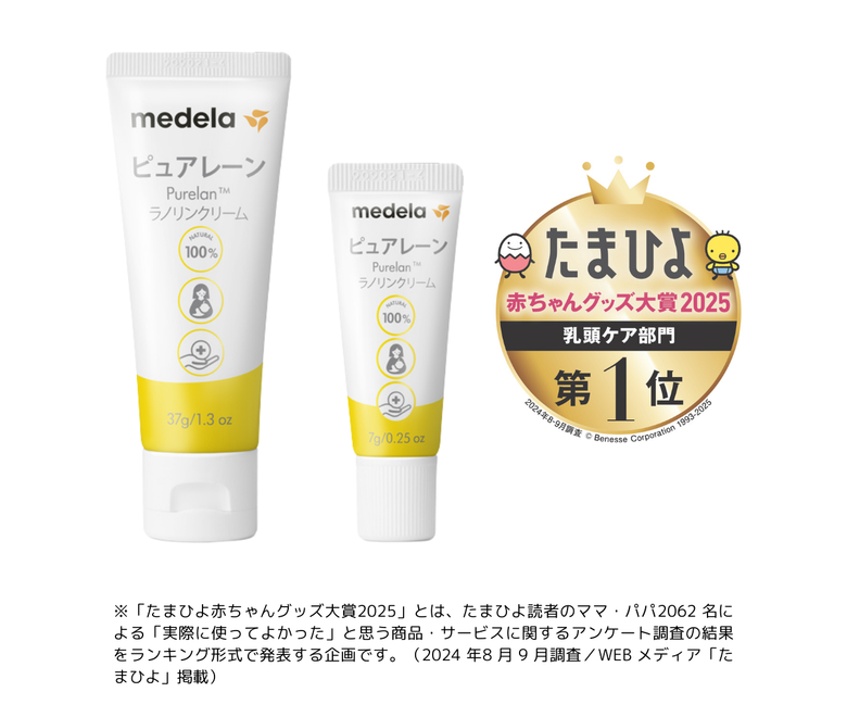 ピュアレーンは37g入りと携帯に便利な7g入りの2サイズをご用意しています。オンラインまたはお近くのベビー用品専門店でご購入いただけます。病院の売店でも取り扱いがある場合がございます。国によって製品展開は異なります。