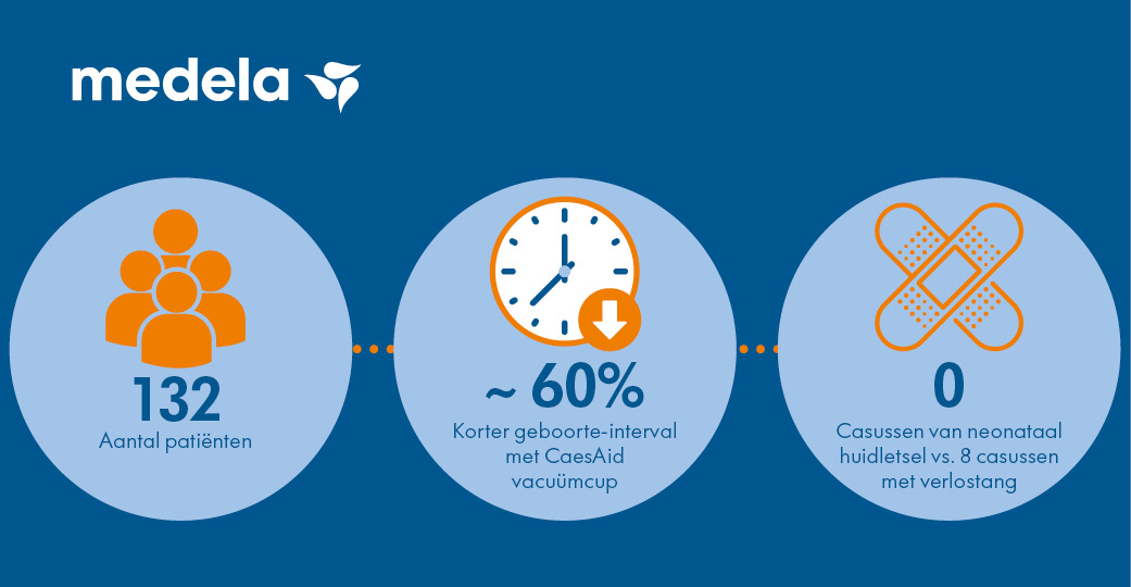 De Jong en Stolwijk beoordeelden in een recente studie* de CaesAid vacuümcup in combinatie met de elektronische vacuümpomp van Medela op de resultaten voor de foetus en de moeder in vergelijking met het gebruik van een verlostang tijdens het uitvoeren van een keizersnede. Het doel van het onderzoek was: te beoordelen of de CaesAid vacuümcup het incisie-geboorteinterval verkort in vergelijking met een verlostang en eventuele complicaties voor moeder en kind in verband met de geboorte in kaart te brengen.
